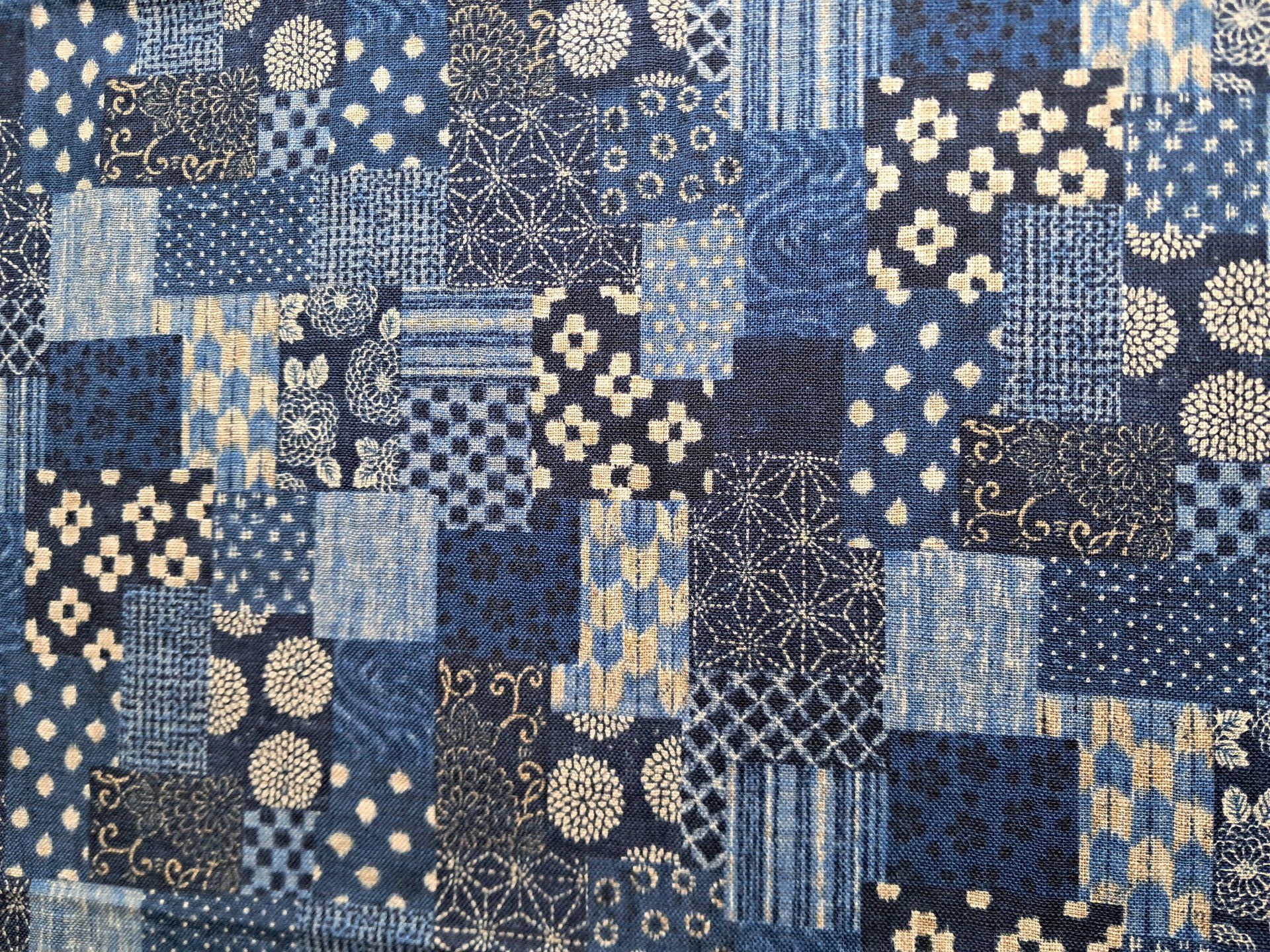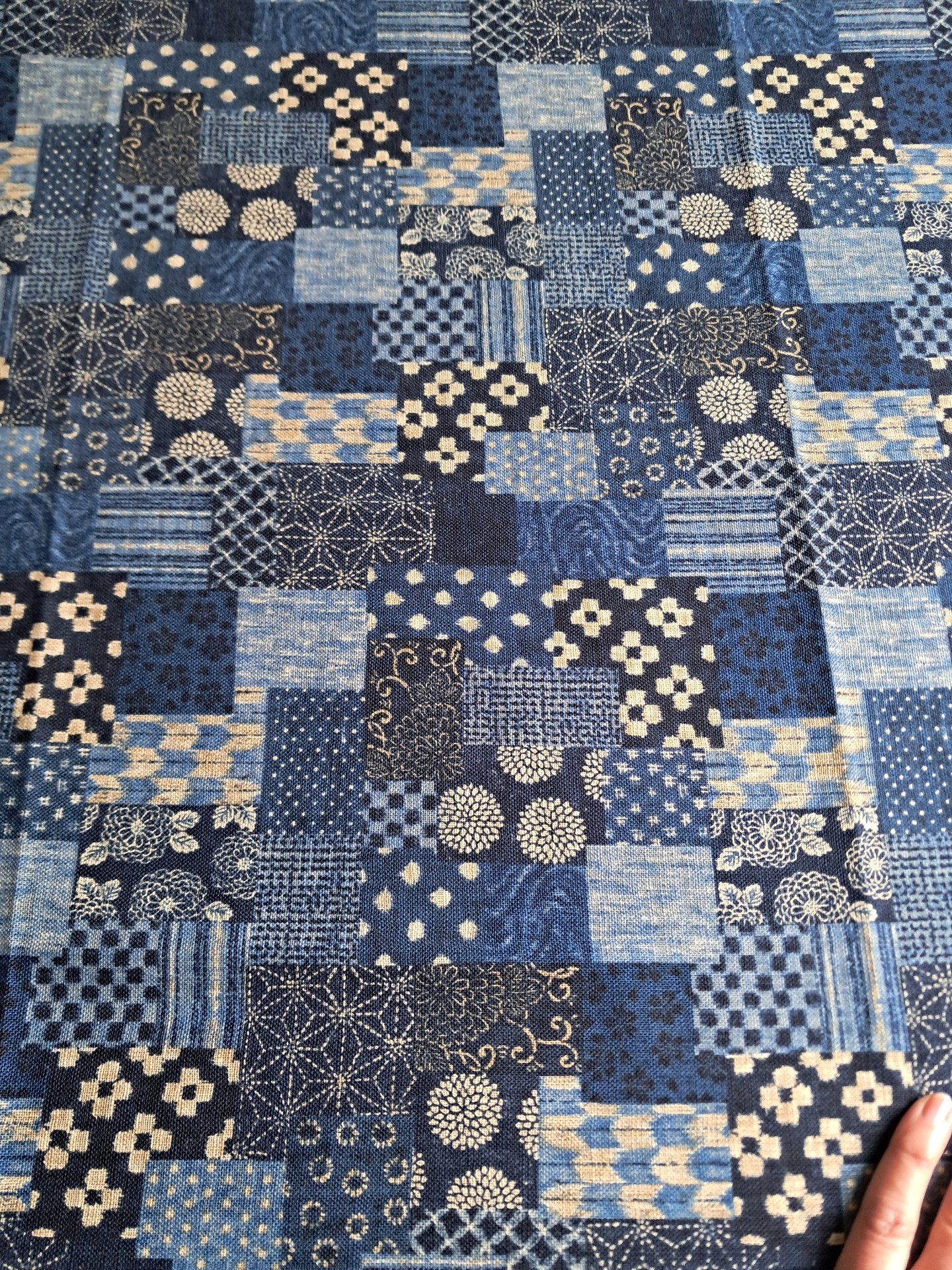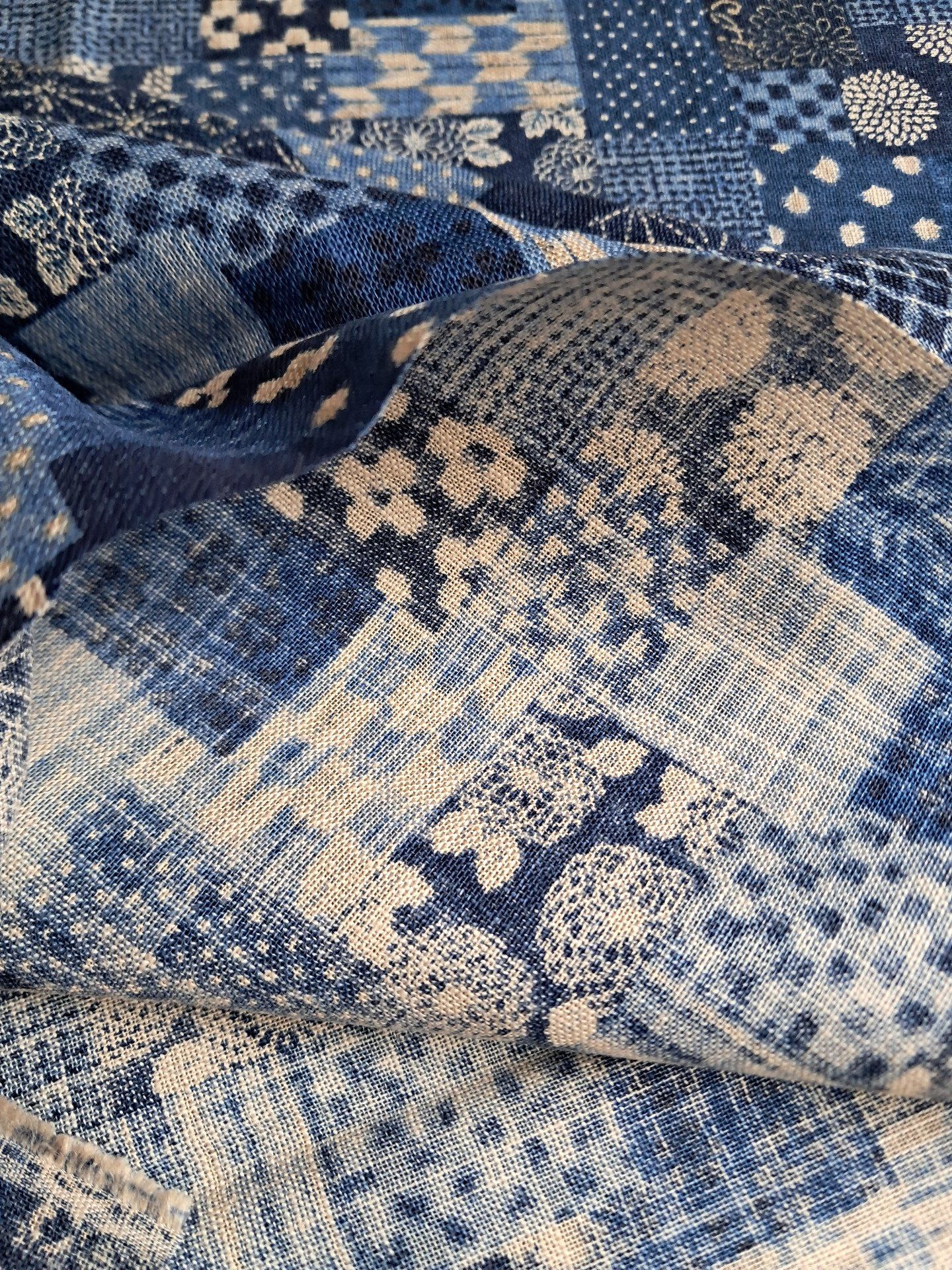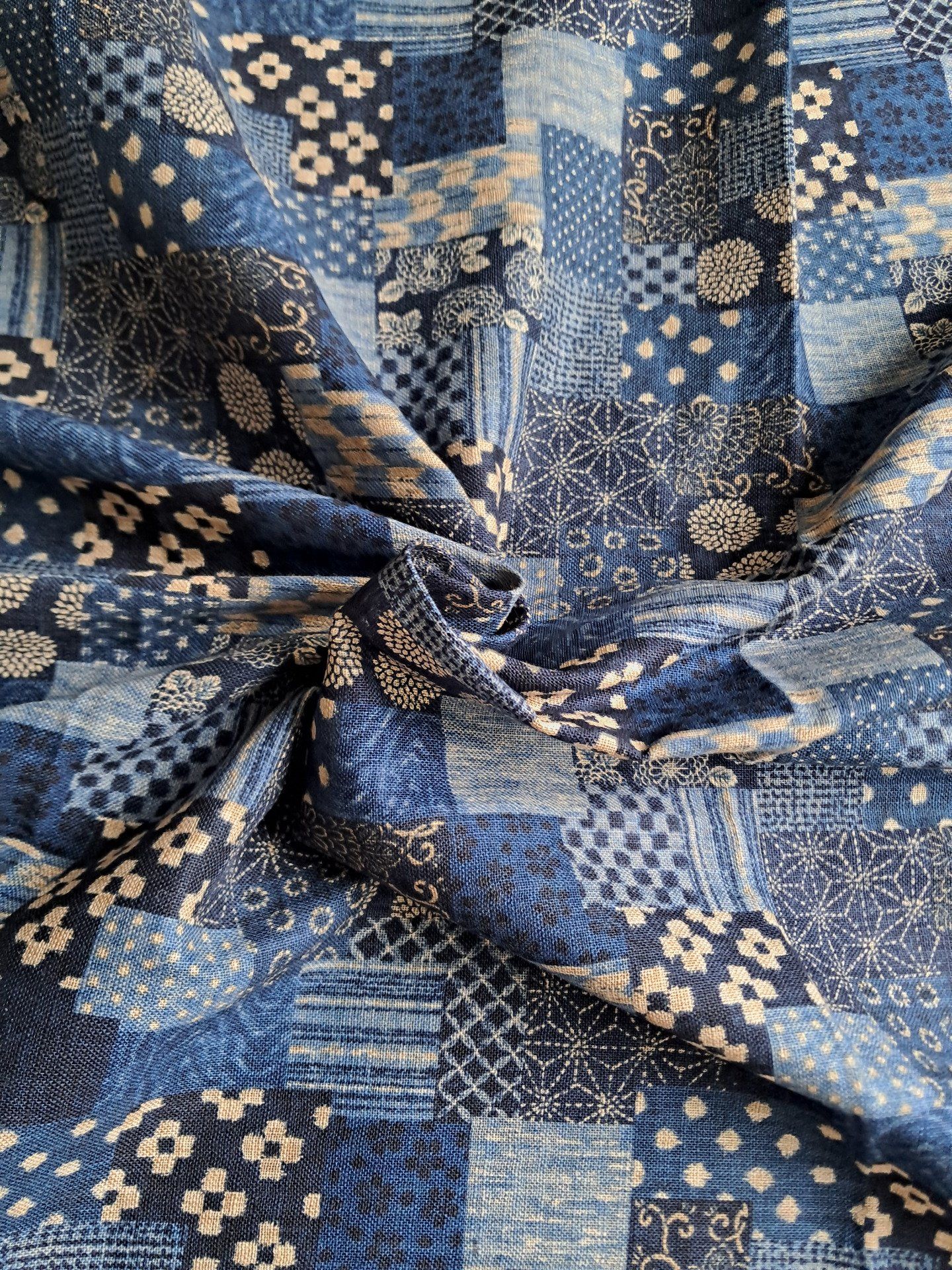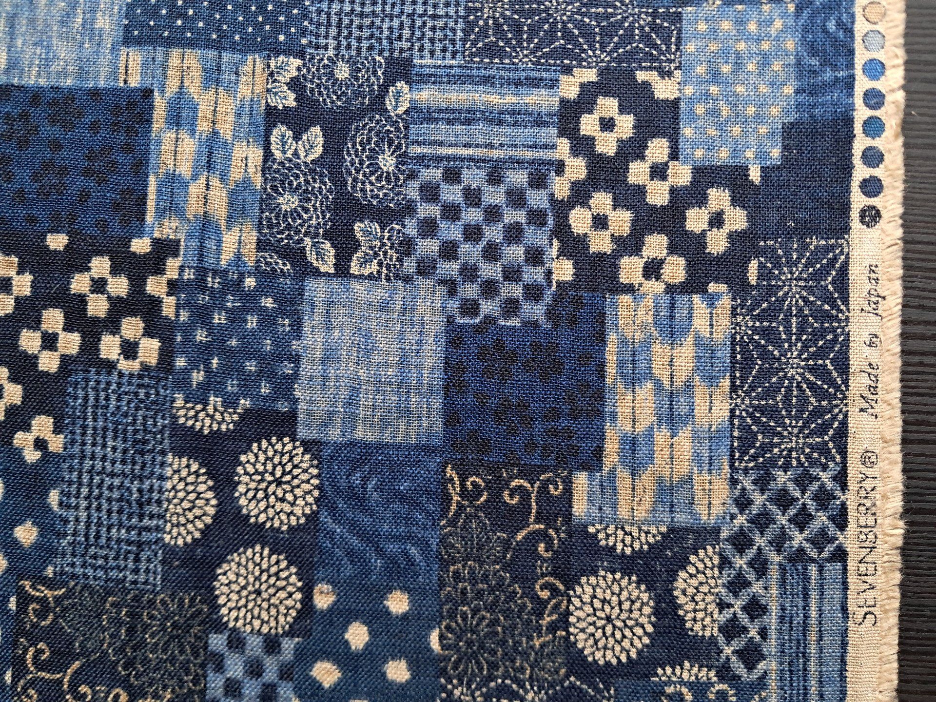 Joli tissu fabriqué au Japon de style Boro (patchwork) de la marque japonaise Sevenberry.