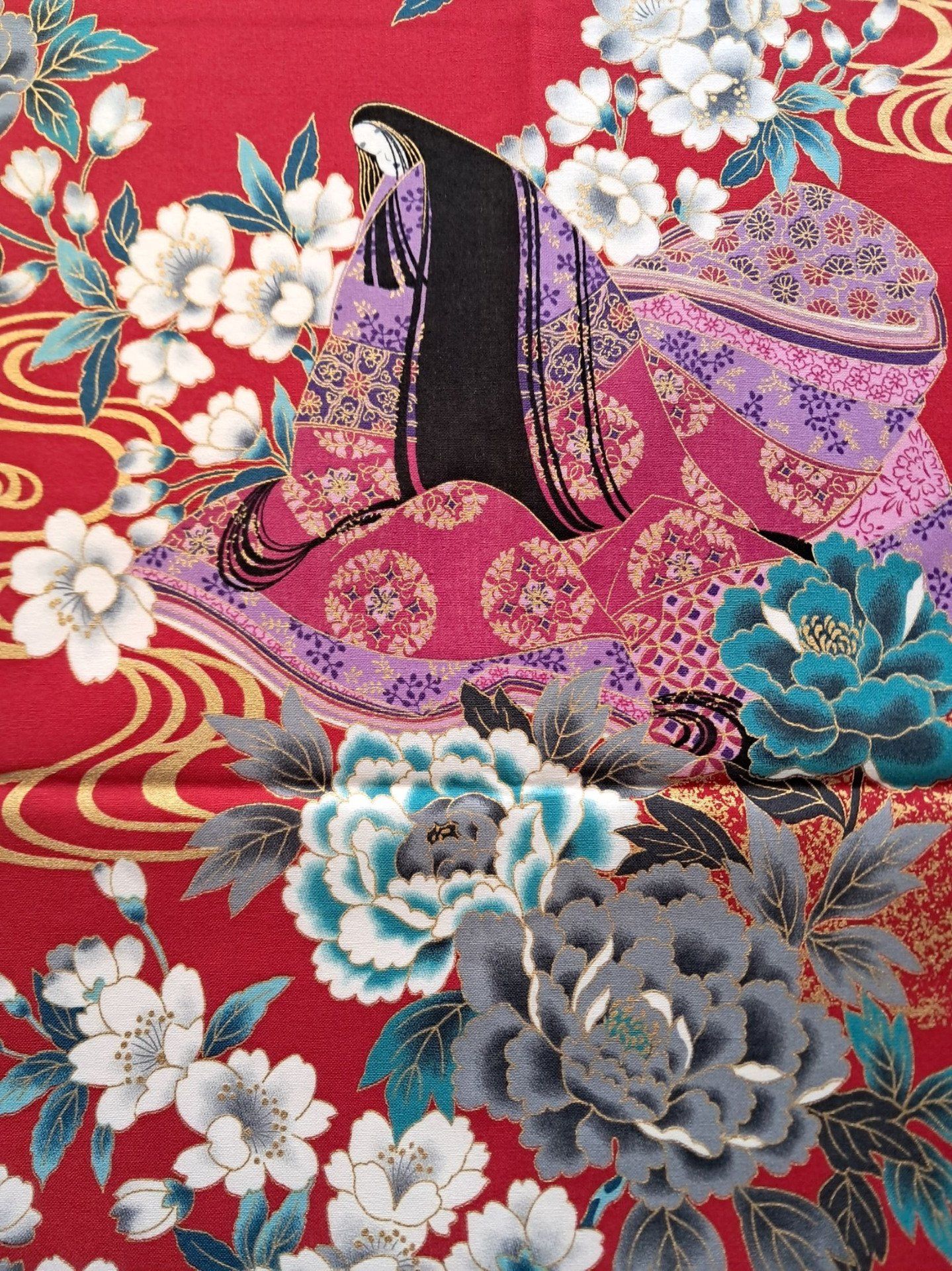 Ce magnifique tissu rend hommage à Dame Murasaki, écrivaine à la cour impériale japonaise au Xe siècle et connue pour son élégance et son raffinement.